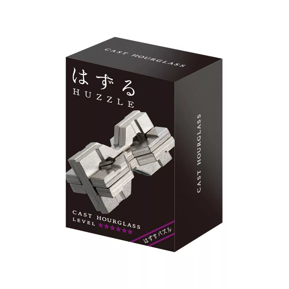 A Huzzle Cast Hourglass négy, egymással látszólag teljesen azonos, homokóra formájú fémelemből áll. A kihívás ezek teljes szétválasztása, majd az eredeti állapot pontos visszaépítése. A forma szimmetriája megtévesztő: az elemek finom eltérései és egymásra ható mozgásai miatt könnyű elveszíteni a fonalat. A megoldás során elengedhetetlen a térbeli gondolkodás, a következetes próbálkozás és az, hogy felismerd a helyes sorrendet – itt nincs helye véletlen mozdulatoknak.