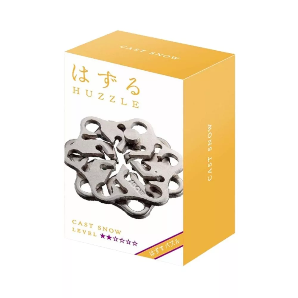A Huzzle Cast Snow több, hópehelyre emlékeztető, finoman tagolt fém elemből áll, amelyek egymásba kapaszkodva alkotnak egységet. A feladat az elemek szétválasztása, majd az eredeti forma visszaállítása. Bár a szerkezet első pillantásra bonyolultnak tűnhet, a megoldás kulcsa a finom elmozdításokban és az elemek közötti rejtett kapcsolatok felismerésében rejlik. Ez a lakat kifejezetten jutalmazza a türelmes, megfigyelésre építő gondolkodást.