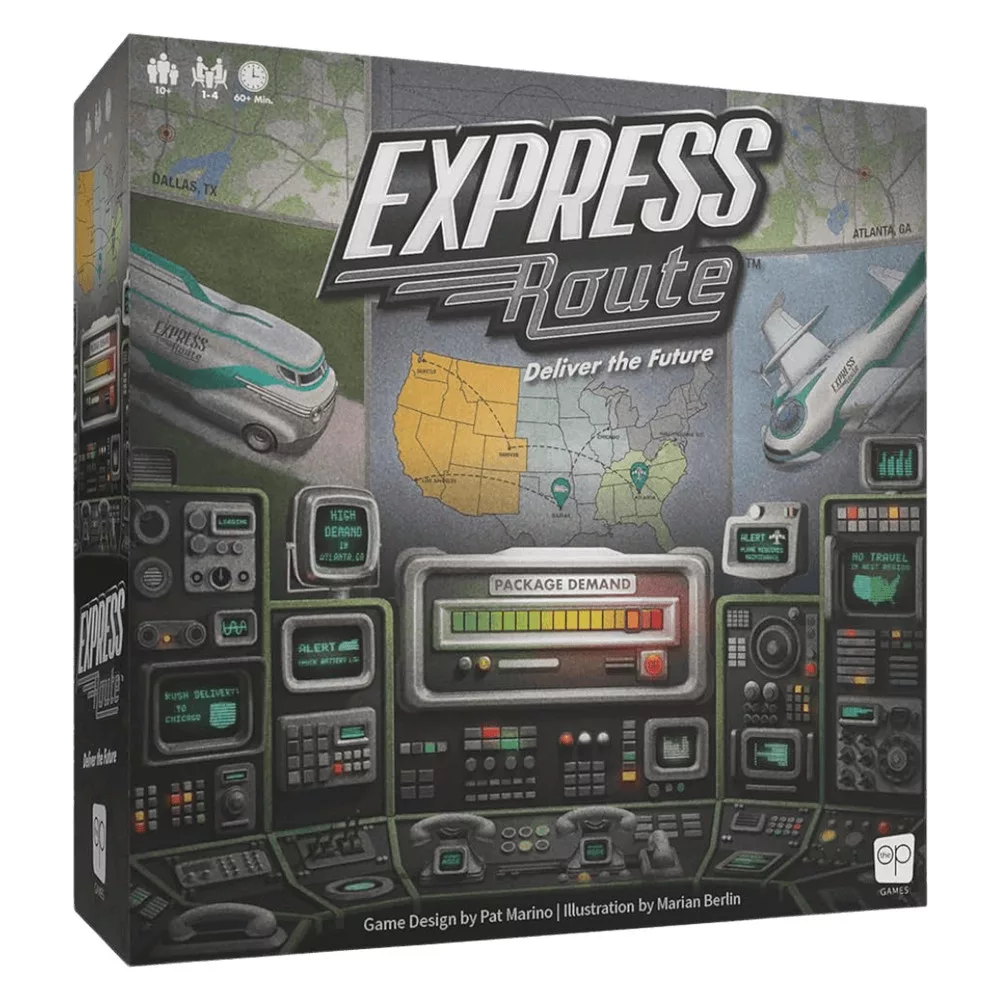 Lépjetek be az 1950-es évek forradalmi világába, ahol a katalógusvásárlás kényelme minden háztartás álma, de a hosszú szállítási idők és a türelmetlen ügyfelek hatalmas kihívást jelentenek! Az Express Route Delivery Service célja, hogy új korszakot nyisson az iparágban egy modern, önvezető teherautókból és repülőgépekből álló hálózattal. Ti, a cég új dolgozói, azért vagytok itt, hogy stratégiai gondolkodással és együttműködéssel biztosítsátok a rendszer hatékony működését, és teljesítsétek a növekvő ügyféligényeket. A játékosok célja, hogy a csomagok leszállításával feltöltsék a „Leszállított csomagok” nyomkövetőt még azelőtt, hogy a kereslet meghaladná a rendszer kapacitását, vagy elfogynának az eseménykártyák. Egy kör során a játékosok új csomagokat adnak a rendszerhez, húznak egy eseménykártyát, majd akciókat hajtanak végre. Ezek az akciók lehetnek a teherautók és repülők mozgásának irányítása, csomagok be- és kirakodása, vagy épp a szállítás teljesítése. Ezenkívül lehetőség van speciális képességek használatára és a rendszer fejlesztésére, hogy lépést tartsatok az egyre növekvő igényekkel. Minden kör végén tisztítási lépések következnek, hogy a következő forduló zökkenőmentesen indulhasson. Legyetek ti az Express Route új sztárjai, és bizonyítsátok be, hogy képesek vagytok forradalmasítani a szállítási ipart!