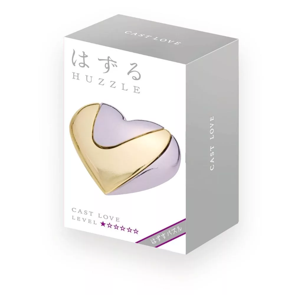 A Huzzle Cast Love két, egymásba simuló, szív formájú fém elemből áll. A feladat az elemek szétválasztása, majd az eredeti állapot visszaállítása. A lágy vonalak és az esztétikus forma könnyed feladványt sejtetnek, de a megoldás során hamar kiderül, hogy az elemek csak nagyon pontos szögben és sorrendben engedik el egymást. A sikerhez türelemre, finom mozdulatokra és tudatos próbálkozásra lesz szükség.