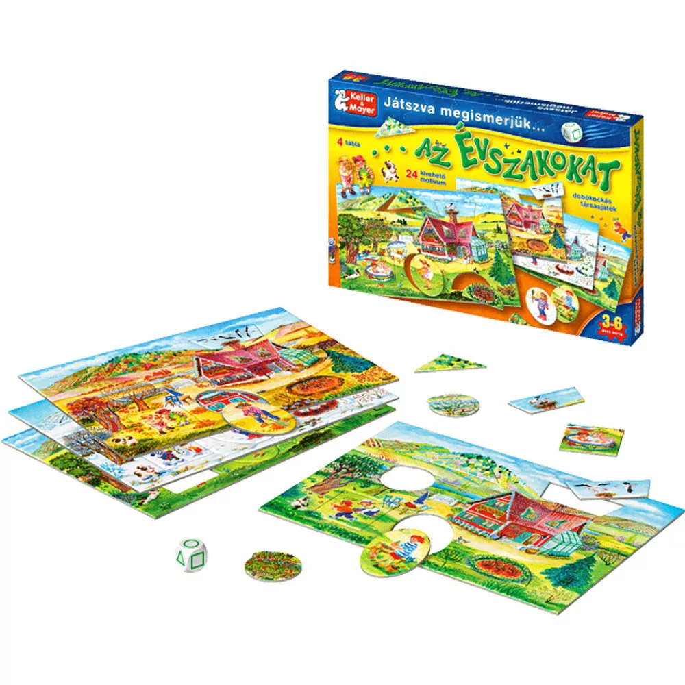 A Játszva megismerjük az évszakokat oktató és fejlesztő társasjáték kifejezetten kis gyerekeknek készült. A játék segítségével bemutathatjuk hogyan változik a környezetünk az évszakok váltakozásával.