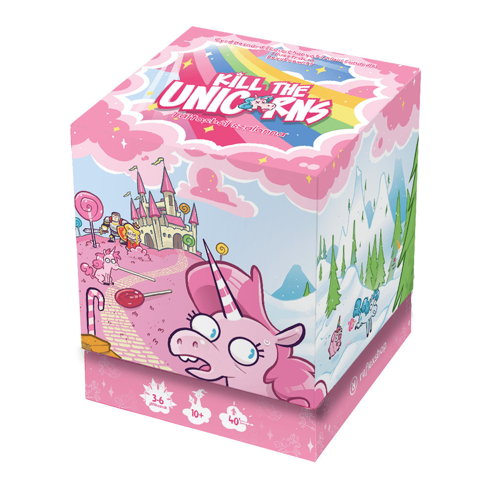 A Kill the Unicorns egy pörgős party társasjáték, amiben célod elfogni és kivégezni az összes unikornist. A kívülről cuki társasjáték doboza egy teljesen más belsőt takar, amelyben csapdát állíthatsz zsákmányaidnak (vagy ellenfeleidnek) és te lehetsz a győztes a négynapos vadászidény végén.