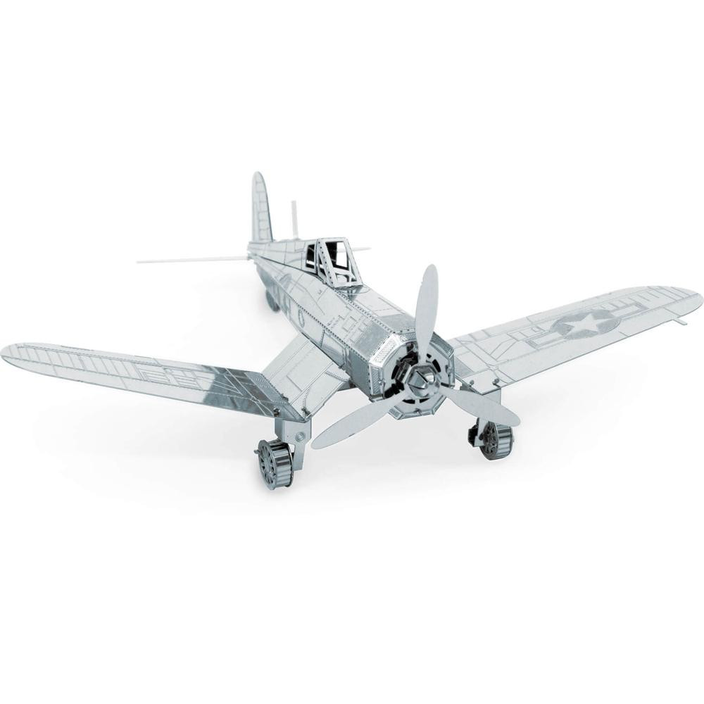 Az F4U Corsair haditengerészeti csillagmotoros vadászrepülőgépet leginkább a II. világháború és a koreai háború során használták. A repülőgép egyike azoknak az egymotoros vadászrepülőgépeknek, melyeket még a II. világháború után is gyártottak. A népszerű vadászrepülőgép gyártását, mellyel több, mint 64 000 harci bevetést teljesítettek a világháború alatt, 1952-ben állították le. De nem végleg, mert a Metal Earth építőkészlet segítéségével megépítheted az F4U Corsair repülőt. Illeszd össze az alpró acél elemeket, hogy felépíthesd saját vadászrepülőd.