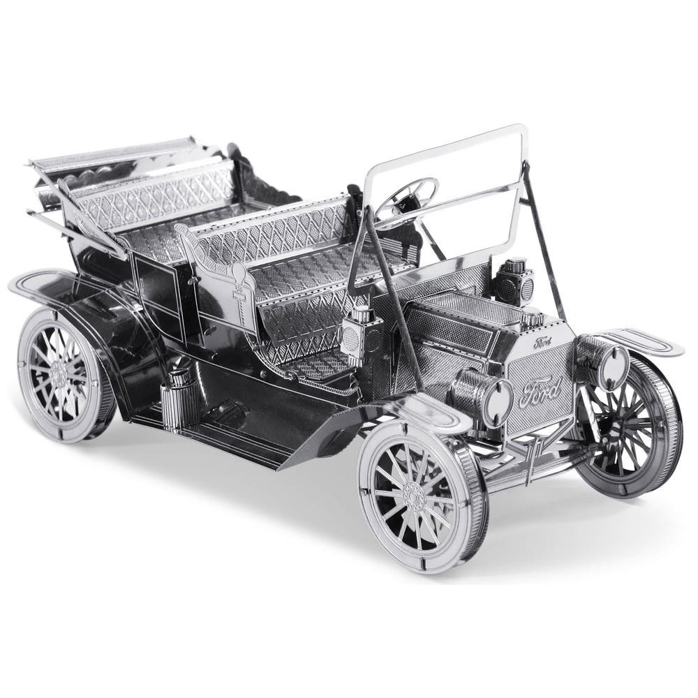 A Henry Ford cége által gyártott Ford T-modellt forradalmasította az autógyártást. A jármű forradalmi áttörést jelentett, mert ez volt az első olyan megfizethető autó, mely a középosztály számára is lehetővé tette az utazást. A 20. század autójának választott Ford T-modell sikere egyszerűségének és célszerűségének tudható be. A tömeggyártását a futószalag tette lehetővé. Építsd meg Te is a Ford által gyártott híres modellt a Metal Earth acél elemek felhasználásával!