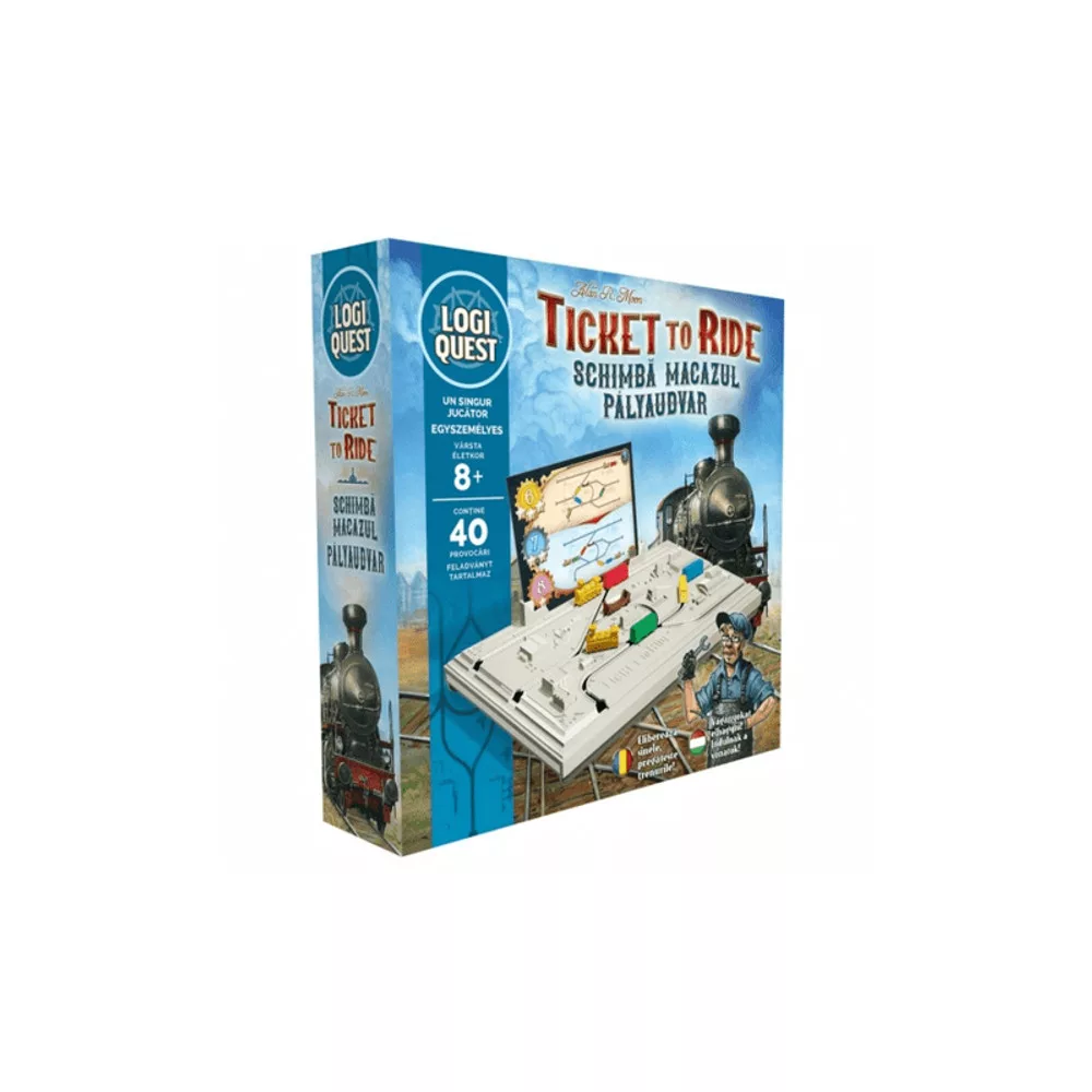 Üdvözlünk a 1900-as években, a gőzmozdonyok korában, ahol a vasút a legnépszerűbb közlekedési forma. A LogiQuest: Ticket to Ride társasjátékban a főszerepben te vagy, mint a főnök a pályaudvaron! A feladatod, hogy a mozdonyt irányítva összeállítsd a teljes szerelvényt a 40 egyre nehezebb pályán. Minden pálya egy-egy logikai feladvány, ahol a cél, hogy minél gyorsabban és pontosabban összekapcsold a vagonokat és elindítsd a vonatot a megfelelő időben.