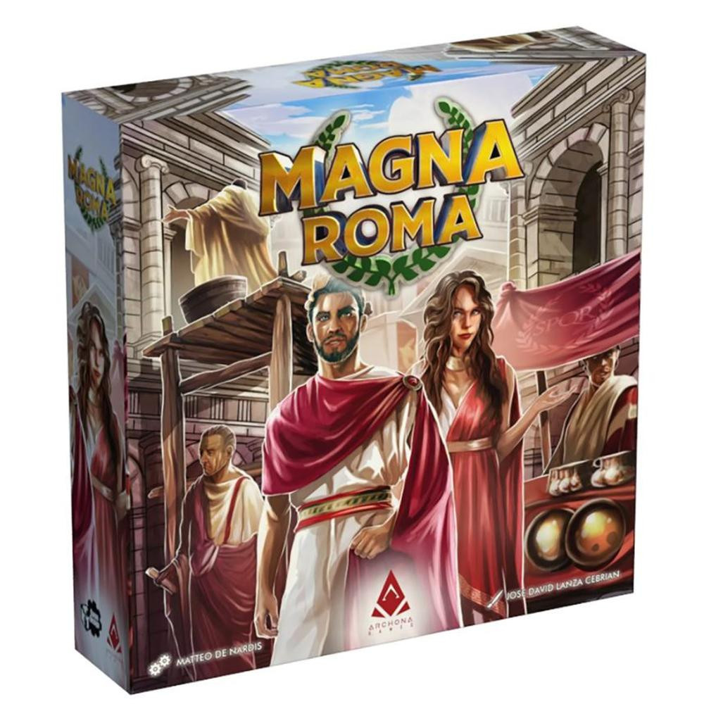 A császárnak most rád van szüksége! Az ókori Római Birodalom bővítésére készülsz, ahol egy befolyásos arisztokrata szerepében megalapíthatod a következő nagyvárost. Gondos tervezéssel és a körültekintő erőforrás-kezeléssel nemcsak a birodalmat virágoztathatod fel, hanem magadnak is örök dicsőséget szerezhetsz. Hódíts, építs és vezesd Rómát új fénykorába! A Magna Roma célja, hogy a játékosok a legtöbb pontot gyűjtsék városuk építésével és fejlesztésével. A játék során a résztvevők városi lapkákat helyeznek le a saját városukban, minden új lapkának érintkeznie kell egy már meglévővel. Az egymáshoz csatlakozó lapkák alakzatai különböző erőforrásokat termelnek, például érméket, lakosságot vagy légiókat. Ha az összekapcsolt formák azonos színűek, a játékos dupla erőforrást kap. Az így megszerzett erőforrásokat a játékosok különböző akciókra fordíthatják: emlékműveket építhetnek, luxuscikkeket szerezhetnek, istenek kedvét nyerhetik el, vagy új provinciákat hódíthatnak meg. A játék végeztével az a játékos győz, aki a legtöbb pontot gyűjtötte, és ezzel megalapította a birodalom legnagyobb és legfényesebb városát. Vajon képes leszel felülmúlni mindenkit és dicsőséget hozni Rómára? Csak rajtad áll! A játék nyelve angol.