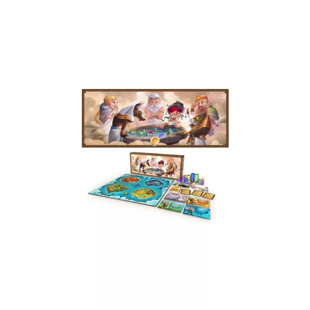 - játéktábla - 4 oldalas istenség kártya - 20 db törvénykártya - győzelmi pont jelzők - kezdőjátékos jelölő - fakorongok - tornádójelölő - "Isten keze" jelölő - tartalék jelölők - játékszabályzat