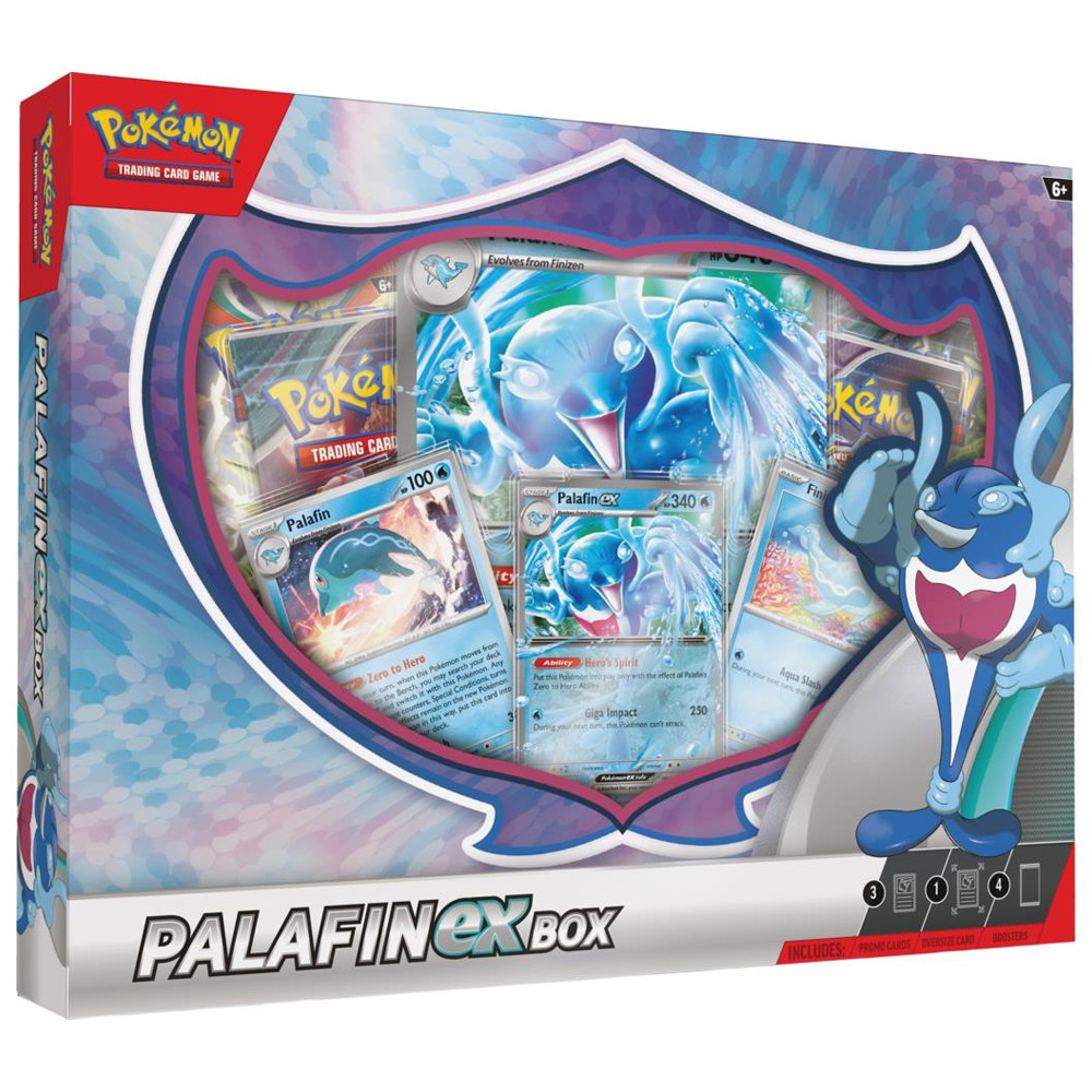 Palafin ex a hős, akire mindig számíthatsz! A Zero to Hero képességével villámgyorsan fordítja meg a csata menetét, és elementáris erejével elsöpri ellenfeleit. A szett nemcsak látványos kártyákat, hanem bővítőcsomagokat és egy óriás kártyát is tartalmaz – tökéletes kiegészítője minden gyűjteménynek!