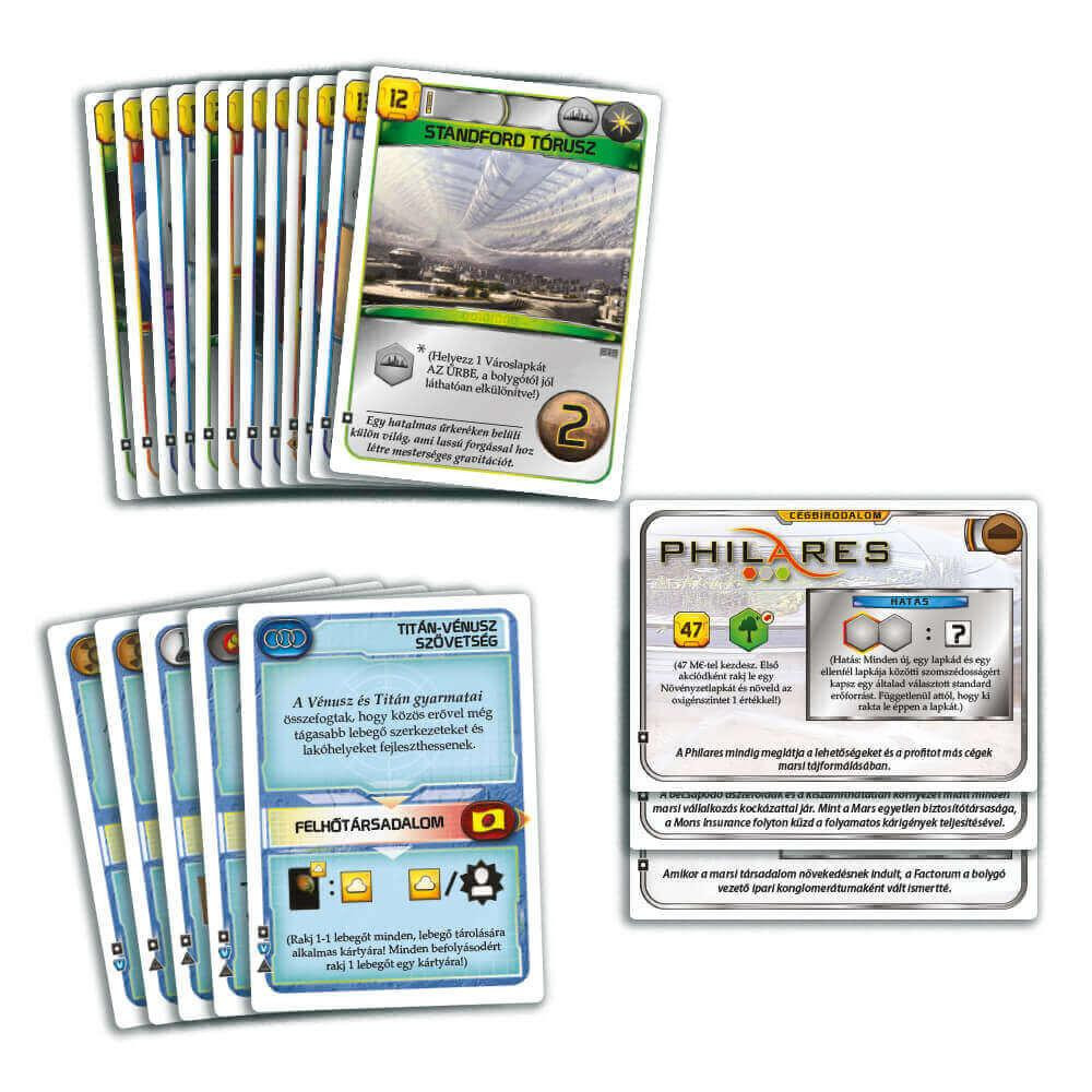 A legújabb, a Hatalmi játszma (Turmoil) kiegészítővel megjelent promókártyák A Mars terraformálása társasjátékhoz.