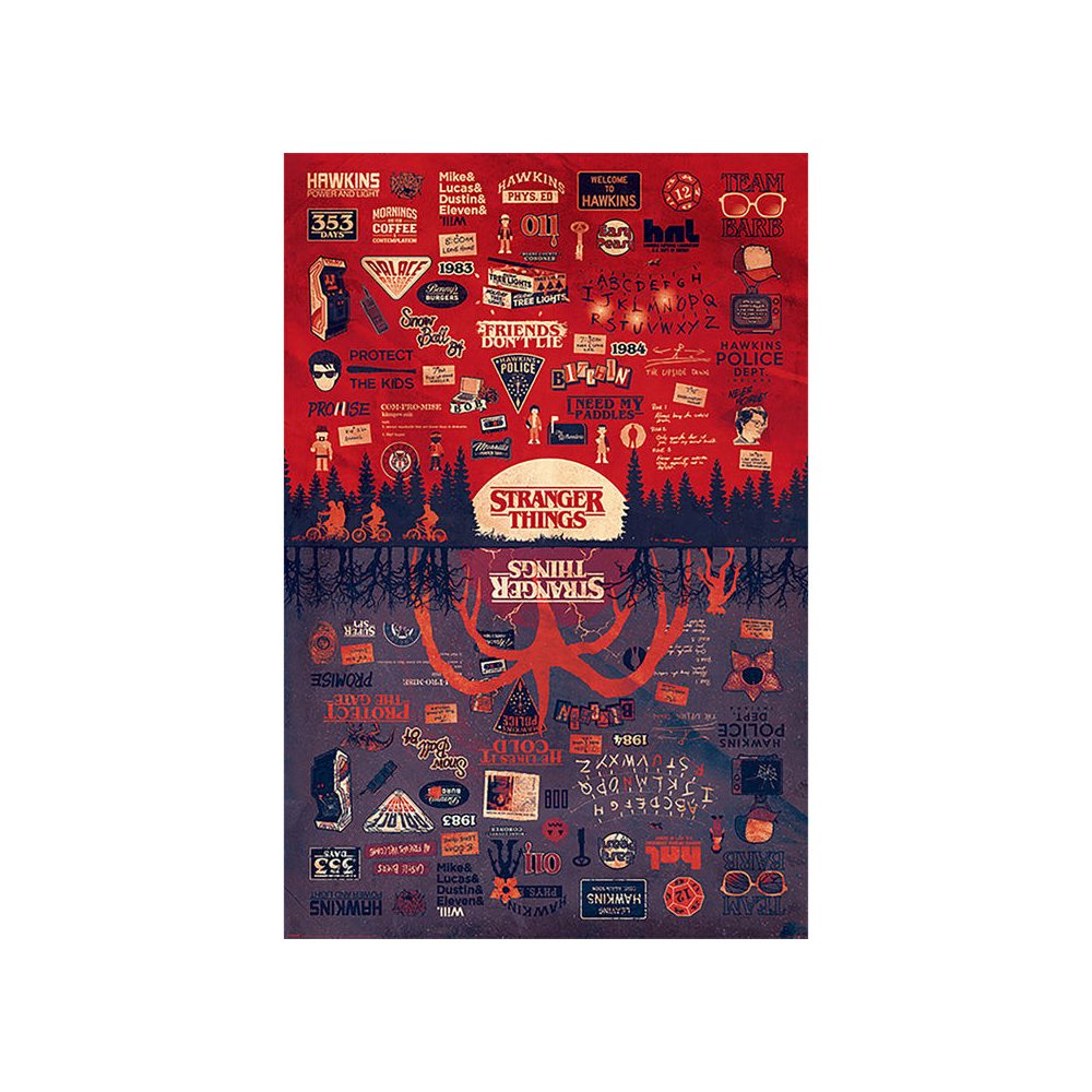 Ez a maxi poszter a Stranger Things legsötétebb hangulatát idézi meg: az Upside Down világa baljós és hátborzongató részletességgel kel életre rajta. A fejjel lefelé létező dimenzió torzan ismerős tájai és alakjai megragadó vizualitással elevenednek meg, ahogy a sorozat ikonikus atmoszférája átszövi az egész képet. A nagy méretű, részletgazdag nyomtatásnak köszönhetően a poszter igazán erőteljes látványt nyújt, legyen szó gamingszobáról, nappaliról vagy egy hangulatos geek sarokról. Erőteljes vizuális élmény és stílusos dekoráció minden Stranger Things-rajongónak – különösen azoknak, akiket a történet sötétebb, misztikus oldala varázsolt el.