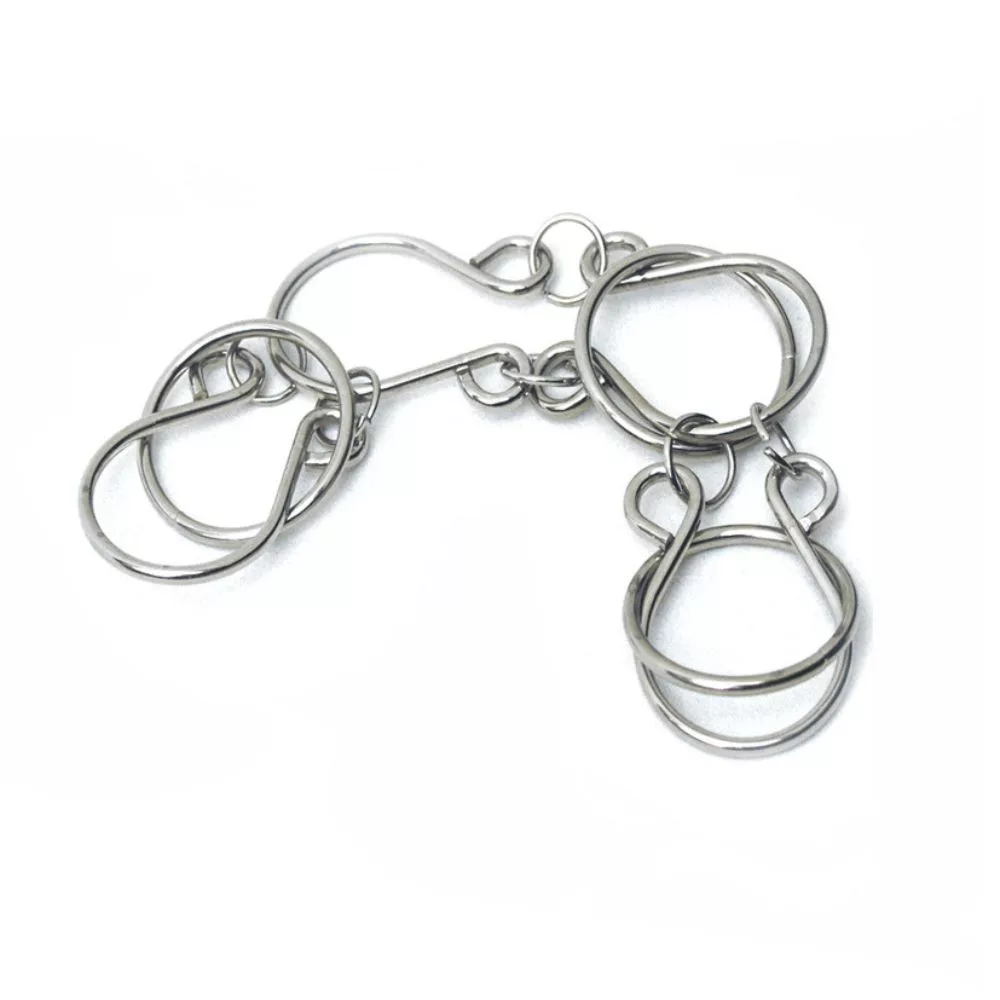 A Racing Wire Puzzle 14 feladata három fémgyűrű eltávolítása az egymásba kapcsolódó, láncszerűen felépített szerkezetből. A gyűrűk több ponton is összefonódnak, ezért a megoldás nem erőn, hanem pontos sorrenden és türelmes mozdulatokon múlik. Egy rossz irány könnyen visszaveti a haladást, így a siker kulcsa a következetes próbálkozás.