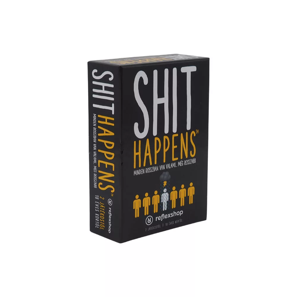 A humorral fűszerezett Shit Happens erősen épít a sötét humorra és a kínos szituációk egyvelegére. A kártyákat mentális egészségügyi szakértők pontozták 1-től 100-ig és helyezték el a szarométer skálán. Legyél te az első, aki 10 kártyát sorba tud helyezni és akár ki találja azok pont értékét.