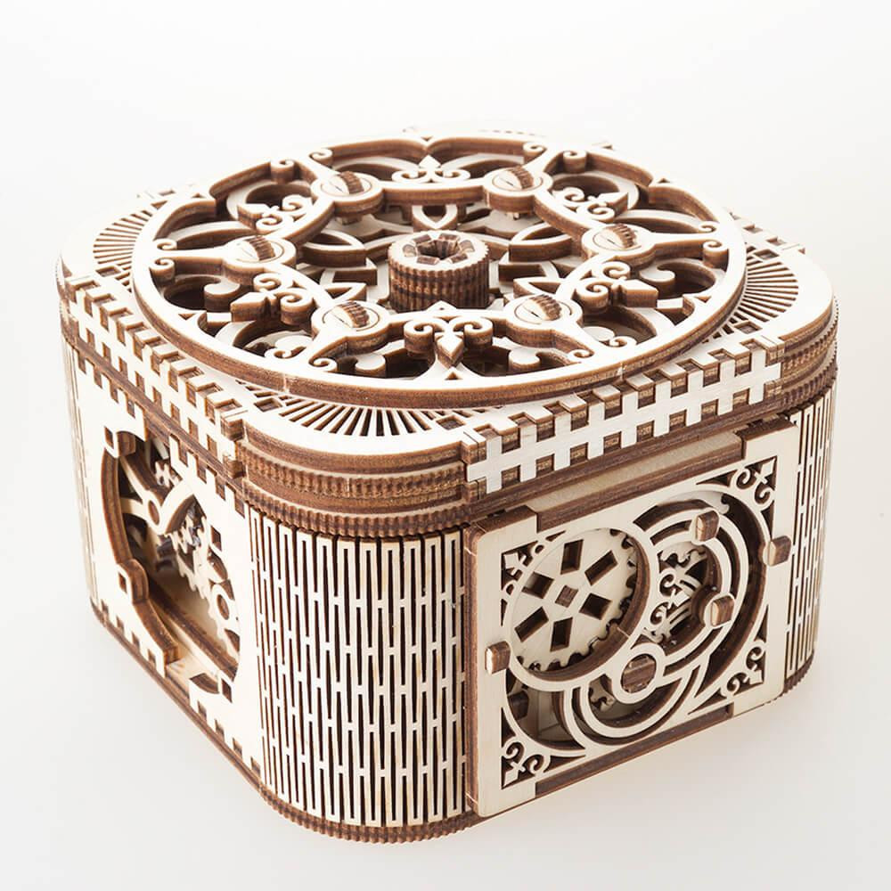 Az UGEARS kincsesláda összeszereléséhez nincs szükség ragasztóra vagy csavarokra! Ajándékozd meg magadat és szeretteidet egy különleges tároló dobozzal, mely biztosan a szoba dísze lesz!