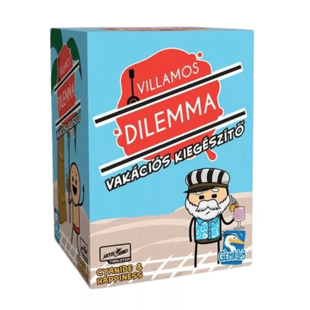 A Vakációs kiegészítő egy 200 kártyából álló kiegészítőcsomag a Villamosdilemma című, jól ismert játékhoz. Ez a bővítmény új, vakáció témájú kártyákat vezet be ebbe az abszurd, de igazán szórakoztató partyjátékba.